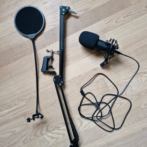 Liten Mikrofonstativ och tillbehör.