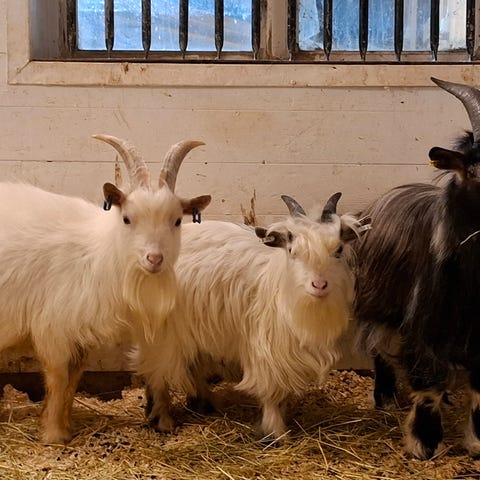 Get, 5 år som producerar mycket och god mjölk med nyfödd get killing. Geten behöver mjölkas ur i början iallafall då det är för mycket mjölk för en ensam killing. Hon är van vid hand mjölkning, men någon mindre mjölk maskin vore att föredra då hennes ljuver är ojämnt och därför jobbigt att mjölka ur. Geten är mycket tam och hanterad. Killingen är hittills också tam och orädd. Finns också bock killingar om man vill betäcka till hösten. Cae fria, parasit fria, friska.