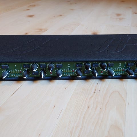 Alesis 3630 kompressor i rackformat. Enheten har dubbla kanaler med separata reglage för threshold, ratio, attack, release och output gain. Frontpanelen har LED-indikering för nivå och gain reduction. Baksidan är utrustad med in- och utgångar per kanal samt strömanslutning. Fungerar för kompression och dynamikbearbetning av ljud i studio- eller livebruk.