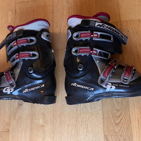 Nordica skidpjäxor Trend vita dampjäxor. Storlek 24.4 (240 - 245) samt 285 sullängd. Modellen har fyra justerbara spännen i metall samt powerstrap upptill för bättre stöd runt vrist och underben. Innerstövel med vaddering för ökad komfort. Passar för alpin åkning.