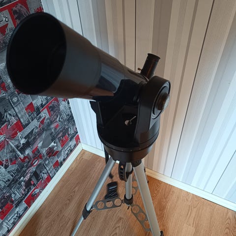 234 Power 60 mm altazimuth refraktorteleskop med vit tub och stativ i trä. Objektivdiameter 60 mm och brännvidd 700 mm. Altazimuthmontering gör det möjligt att justera teleskopet i både höjd- och sidled. Levereras med stativ och bruksanvisning enligt bild. Lämpligt för observation av månen, planeter och ljusare himmelsobjekt. Säljes pga flytt.