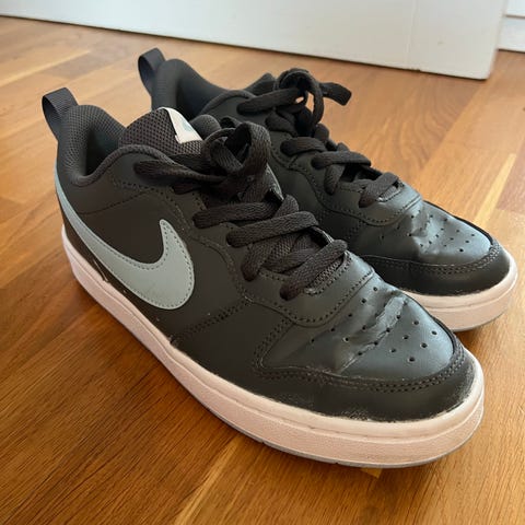 Nike sneakers i storlek 39. Skorna är helsvarta med snörning. Passar som vardagsskor eller fritidsskor. Skosnörena är lite slitna och kan bytas för en nättre intryck, annars är skon i bra skick.