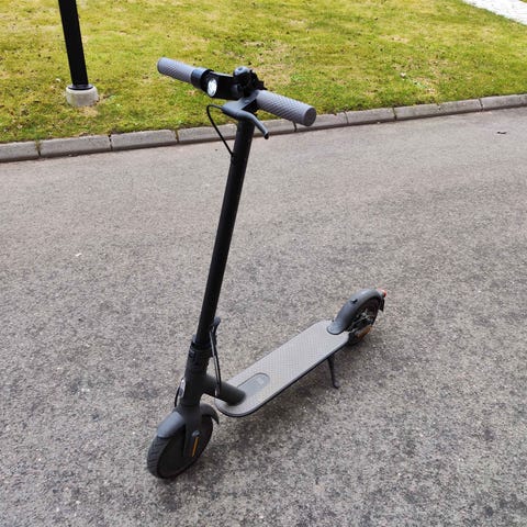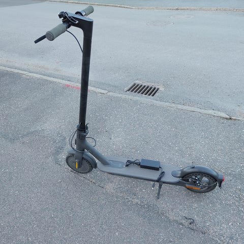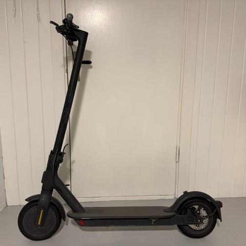Elsparkcykel i svart utförande. Modellen har ståplatta med halkskydd, styre med handtag och display/enhet framtill samt fram- och bakhjul med stänkskärm bak. Passar för persontransport på kortare sträckor på hårda underlag. Drivs av elmotor med batteri placerat i ramen eller ståplattan. Laddas via eluttag med tillhörande laddare (ej synlig på bilden).