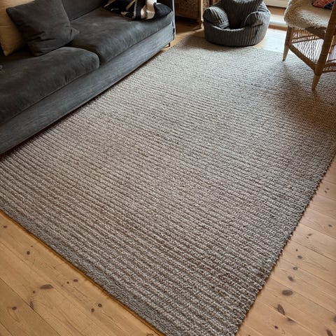 Endast ett par månader gammal, som ny, alltså inget spill, fläckar eller liknande. Mycket mjuk och härlig för fötterna!