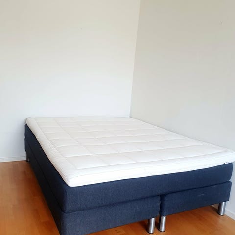 Jag har denna otroligt sköna kvalitetssäng (blå) från EMhome i Tenhult att sälja då den inte får plats i nya lägenheten. Se mer information på bild nr 4. ☀️