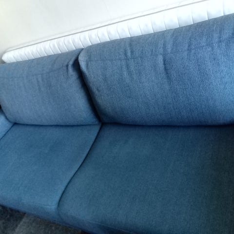 Måtten är cirka och i utbäddat läge är den 2 meter lång. Soffan är tung. För att bädda ut tar man tag i ryggkuddarna och lyfter ur bädden. Finns i Gröndal.