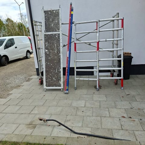 Uthyres: Rullställning, byggställning, ställning på hjul och helt i aluminium som enkelt kan flyttas efter hand som det behövs.