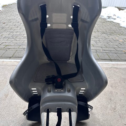 Cykelsits i fint använt skick. Tyvärr utan ramfäste då det satt på en cykel som blev stulen. Finns att köpa extra. Utan remmarna för att kunna spänna fast fötterna.