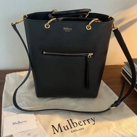 Invändigt finns huvudfack. Väskan har dekorativ hänglås och nyckelring i metall med Mulberry-gravyr. Passar som vardags- eller arbetsväska där dokument, plånbok, mobil och andra personliga saker får plats.