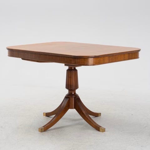 Bordskivan är nybehandlad med köksbänksolja men har vissa märken som syns. Inga iläggsskivor.