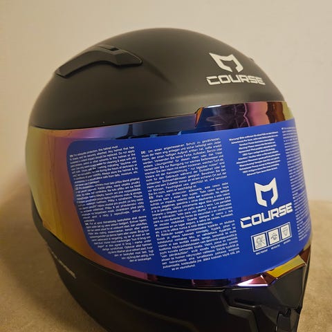 Bogotto motorcykelhjälm i storlek XS (53–54 cm). Hjälmen är svart med nedfällbart tonat visir. ECE R 22.05-godkänd med angiven vikt 1350 ± 50 g. Invändigt vadderad med hakrem och snabbspänne. Passar för motorcykel- eller mopedkörning där integralhjälm med visir önskas.