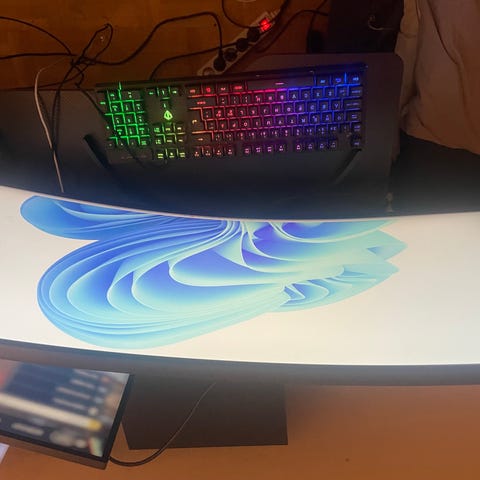Datorskärm på 38 tum. Skärmen är böjd ultrawide-modell som lämpar sig för arbete, spel och filmvisning. Ansluts till dator eller annan enhet via vanliga bildskärmsanslutningar beroende på modell. Passar för skrivbordsmiljö och ger bred arbetsyta på skärmen.