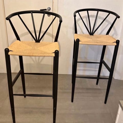 Säljer 5 st barstolar i svart sammet tyg och svarta ben i metall.