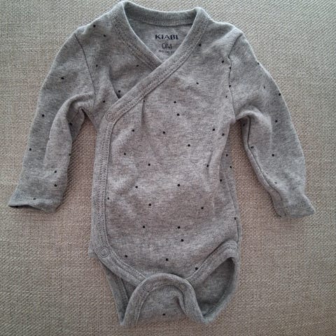 ♥︎ Grå- och vitrandig body i storlek 80