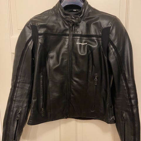 Beige mockajacka i biker modell. Strl. 46 Sparsamt använd. Hämtas i Viksjö, Järfälla. Swish betalning