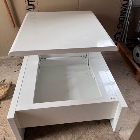 IKEA soffbord i vitt utförande. Bordet har en rektangulär bordsskiva och en underhylla för extra förvaring. Under bordsskivan finns en låda med handtag. Sett ovanifrån är bordet indelat i fyra sektioner. Passar som soffbord i vardagsrum med plats för förvaring av fjärrkontroller, tidningar eller andra mindre saker.