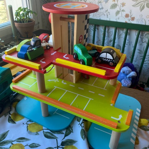 Inkl. tillhörande ambulans, polisbil och helikopter i trä.