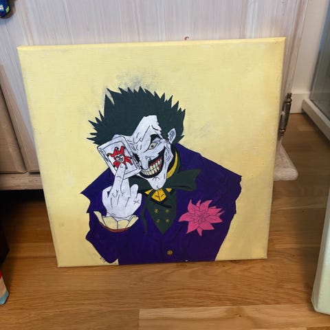 Fladder musen. Byst föreställande en superhjälteinspirerad figur med mask och stora öron. Figuren är målad i svart med gula och vita serietidningsljud som textdetaljer runt om, samt en gul symbol på bröstet. Bysten står på en rund fot och lämpar sig som prydnad eller samlarföremål i hemmet, till exempel på hylla, skrivbord eller i vitrinskåp.