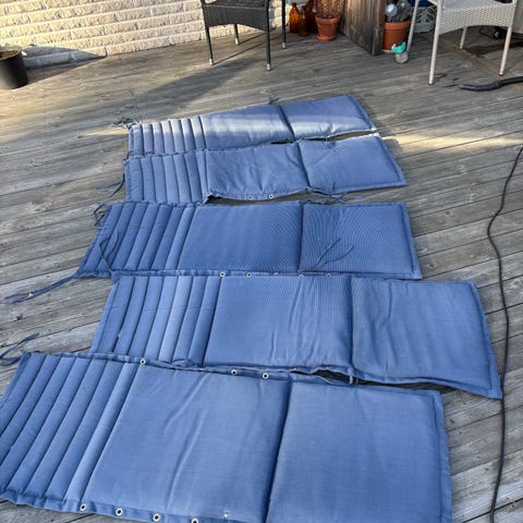 Insynsskydd 4 st.150x700 cm av nylon med öljetter för fastsättning. 2 st. Ljusgrå och 2 st. mörkgrå. Aldrig använda således i nyskick. Angivet pris per styck, pris vid köp av alla 1.500,- nypris 4.000,-
