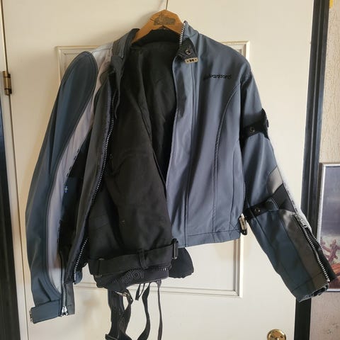 McPool Gore-tex motorcykelställ storlek 50 bestående av jacka och byxor med löstagbara quiltade innerfoder.