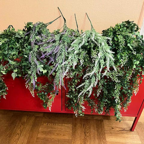 Konstgjorda blomarrangemang i olika storlekar och former. Flera olika sorters blommor i blandade färger, placerade i krukor och vaser av främst vitt och ljust material. Passar som dekoration inomhus, exempelvis i vardagsrum, hall eller kontor. Kräver ingen skötsel utöver eventuell dammtorkning.Ifrån 10kr/styck allt för 695kr