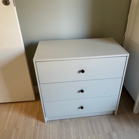 Vit byrå med tre lådor