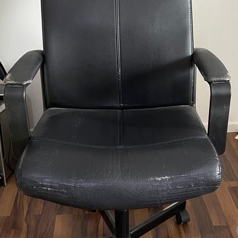 Säljer min stol nu eftersom jag skaffat en ny. Den är synligt använd och ett armstöd sitter lite löst så ryggstödet lutar bak lite mer än den ska men det märks inte så mycket, den är rätt så bekväm att sitta i. Denj hämtas bara på plats.