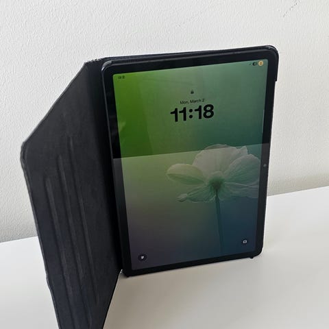 När jag köpte den la ja in en enkel gravering på baksidan där det står ”LP” i väldigt litet typsnitt som kamouflerar in sig i färgen på ipaden.