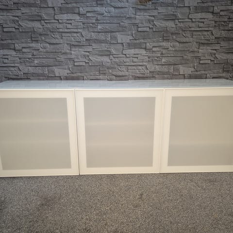 Dörrarna är vitblank. Insidan ser likadan ut i alla tre- tre hyllplan. Säljes pga. flytt.