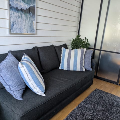 Mörkblå manchester med mönster i beige. Sparsamt använd som gästsäng hos mina föräldrar. Riktig bild och exakta mått kan du få på söndag.