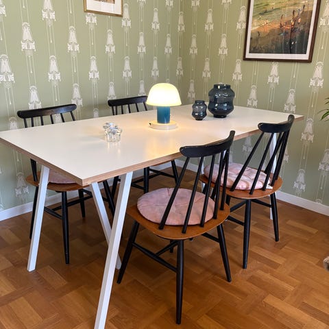 ILVA matgrupp bord med vit skiva svarta ben + 6 st IKEA pinnstolar