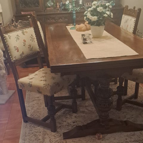 Bord + 6 stolar och tillhörande skänk