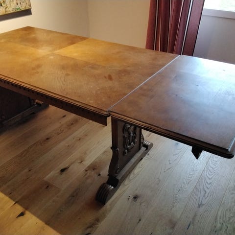 Snyggt stort antikt matsalsbord i mörkt trä. Perfekt för dig som gillar äldre stil. Köpt på en antikaffär för åtta år sen. Ska flytta till mindre lägenhet och vill bli av med det, därav bra pris.