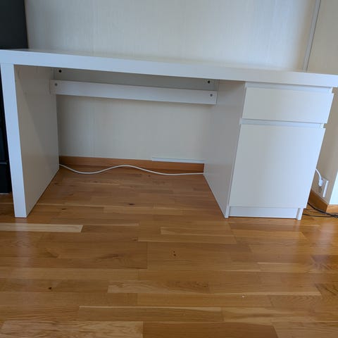 Säljer ett vitt skrivbord av modell Micke från Ikea.
