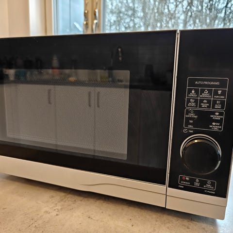 Samsung mikrovågsugn i stålutförande. Utrustad med mekaniska vred för effekt- och tidsinställning, med tydlig effektmarkering upp till 800 W. Invändigt finns roterande tallrik i glas. Passar för uppvärmning och enklare tillagning av mat i kök eller pentry. Fristående modell som placeras på bänk. Bredd-ca 49 cm , höjd- ca 26 cm, djup-ca 32 cm .
