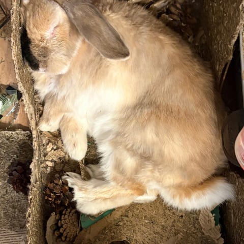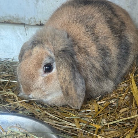 Jättesöt kanin som tyvärr inte går ihop med en av de andra kaninerna, fungerar med den tredje kaninen men tyvärr kan vi inte hålla dem åtskilda så vi önskar att han kan få ett nytt hem, antingen inne eller med kompis ute. Han är van att vara både inne och ute. Van vid katter och barn, jättesnäll vid hantering.