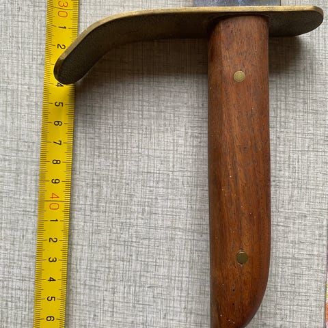 Synbara slitage på bladet , eggen på toppen ser skadad ut , rostfritt. 27 cm långt med knivslida. Knivblad 15 cm , knivskaft 15 cm . Men knivslidan är jätte fin i skinn