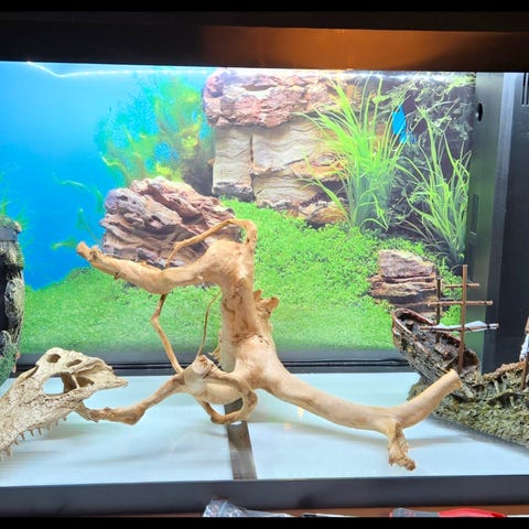 Säljes ett komplett akvarium med tillbehör: pump, ljusramp led 2st, grus/sand, luftpump med syre sten, håv.