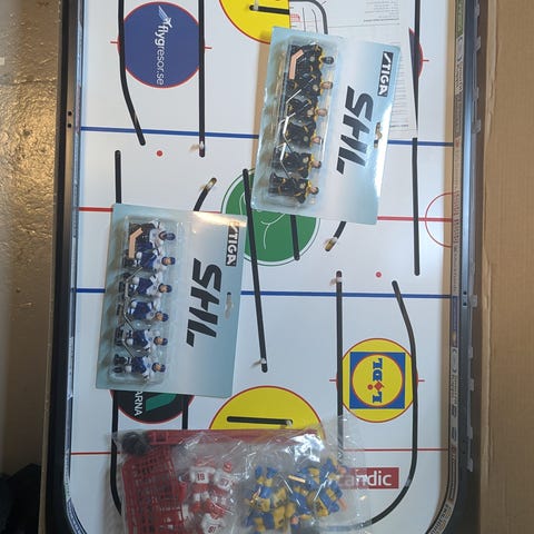 Säljer mitt hockeyspel då jag inte använder den längre. Alla gubbar och målen ligger i plastpåsen som ligger på planen. Den har inte används mycket och den är i fint skick. Ny kostar 1200kr. Kan gå ner lite i pris!