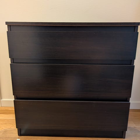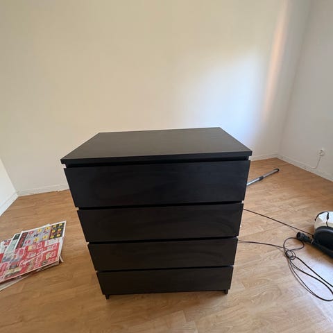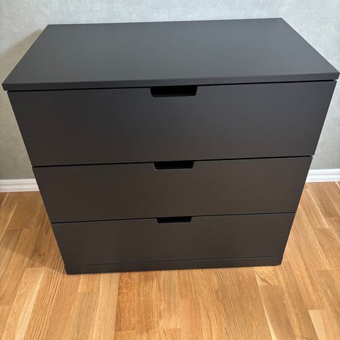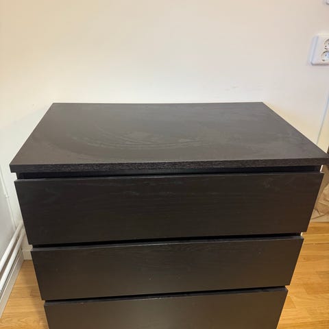 Säljer svart TV- bänk/ skåp/byrå i mycket fint skick. Lös svart skiva i komposit. Uttag är gjorda på baksidan för el- uttag. Bör förankras i vägg. Hämtas i Gävle.