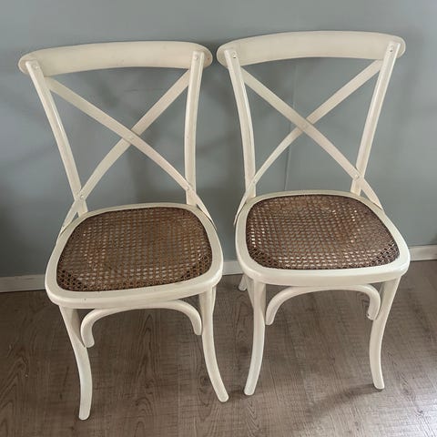 Ett par vita Ton no.14 med nya rottingsitsar