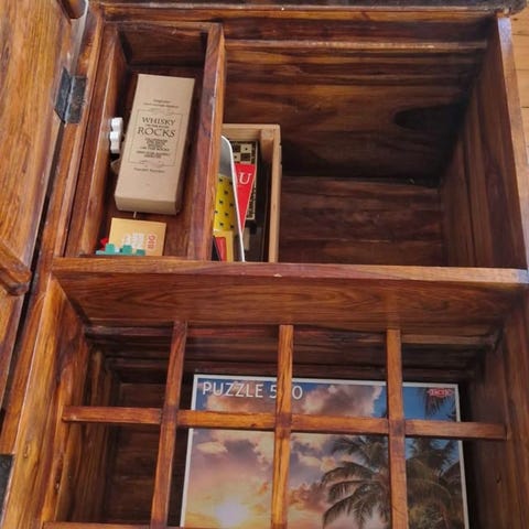 Jätte fint bord/koffert. Kan stå upp på kortsidan om man vil det för att få höjd.
