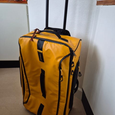 Samsonite resväska i tyg för unisex. Väskan är brun med detaljer i liknande ton och har två hjul samt skyddande fötter på undersidan. Utrustad med bärhandtag upptill och på sidan samt flera ytterfack med dragkedja för organiserad packning. Huvudfacket öppnas med dragkedja och har invändiga remmar som hjälper till att hålla innehållet på plats. Passar för kortare resor, weekendresor. Inkluderar axelrem och oanvända pack påsar