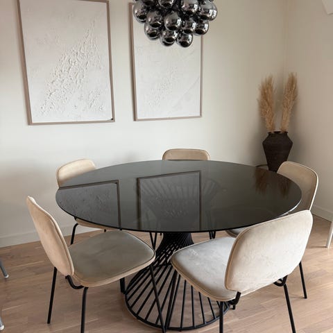 Matgrupp: Glasbord 100X200 med 6 stolar. Mycket välvårdad från ett rök- och djurfritt hem