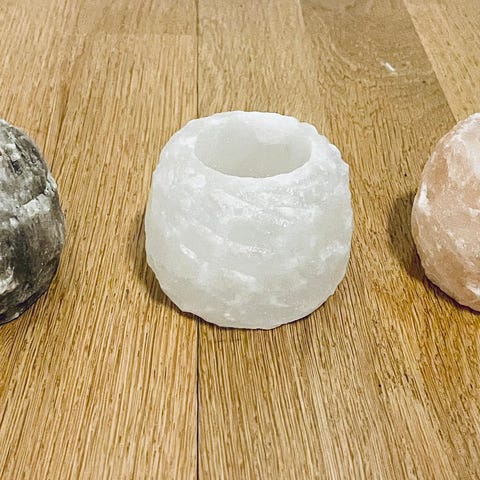 Ljuslyktor i rosa saltkristall. De är utformade för värmeljus och ger ett dämpat, varmt sken genom den naturliga kristallstrukturen. Passar som dekorativ inredningsdetalj.