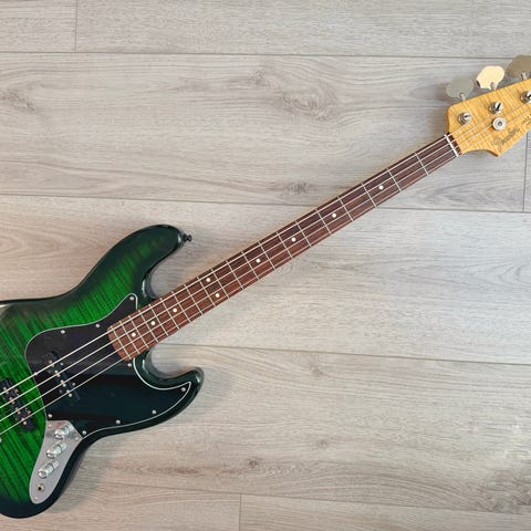 Fantastisk vintage stylad jazzbas i en fin retrofärg! Endast lätt använd. Köpt 2025, kvitto finns. Vikt: 4kg. Hämtas i Stockholm evt skickas om jag kan hitta en bra kartong!