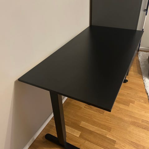 Höj och sänkbart skrivbord från Linak säljes enligt bild. 140x80 är måtten på skivan och stativet ger en arbetshöjd på 58-124cm.
