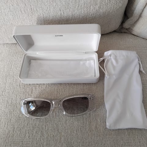 Snyggt och stilrent glasögonfodral i vitt konstläder från Glas. Fodralet har en mjuk, ljusrosa insida och präglad logga på ovansidan. Perfekt för att skydda dina glasögon i väskan eller fickan. Har nån liten bläck-stänk på ena sidan, se , bild, men är annars i jättebra skick.