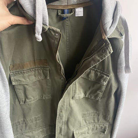 Ny jeansjacka Garcia, färg svart, vintage use. Tunnare täckjacka, Mads Nörgard, färg Olive night