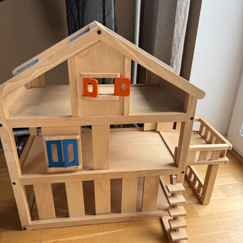 Knappt använt. Limmat fast en trappa. Då allt i huset är löst(dvs inga lim någonstans i huset utan allt i trä!!
